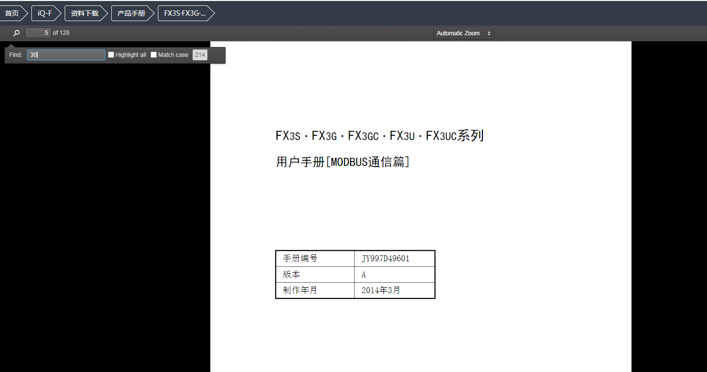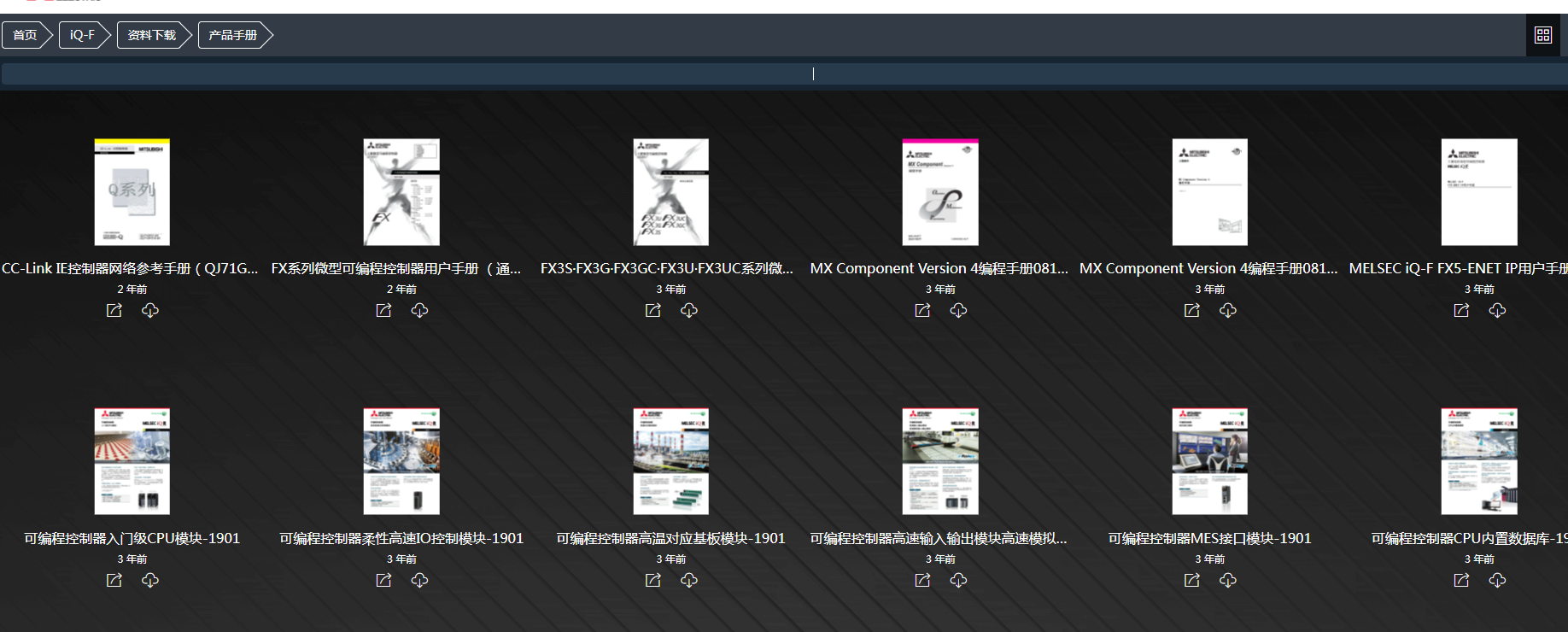 例如我要找IQ-F的PLC的資料手冊。直接點擊進去。(可以左右滑動,需要找什么資料就進去)