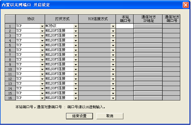 PLCport為PLC指定的端口號,(0-FFFF)