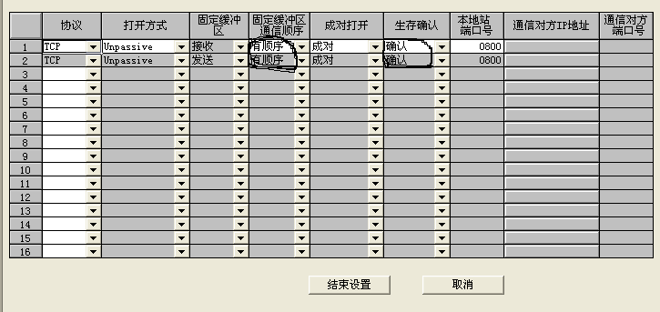上圖是選擇TCP通訊協議時的情況,圖中鉛筆圈定的兩個地方要注意,第一處一定要選“有順序”否則會引起通訊失敗,第二處一定要選 “確認”,這樣才能與上一圖中的設置相對應,否則會導致通訊恢復需要很長時間。