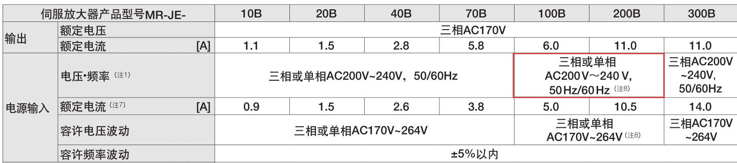 ②只有三菱伺服電機(jī)MR-JE系列有這個(gè)說(shuō)明,J2S,J3,J4系列大于750W都需要三相220V。