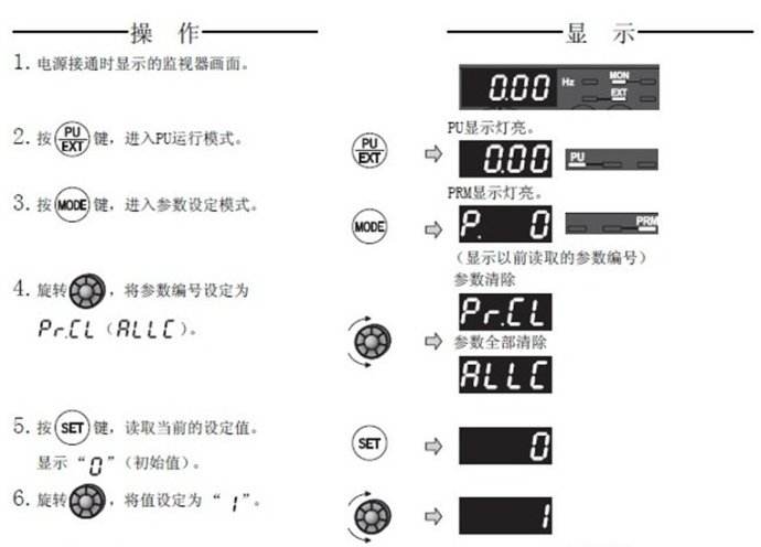 以下是三菱變頻器F740系列恢復(fù)出廠設(shè)置的步驟: